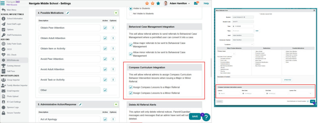 Compass Curriculum – Behavior Intervention lessons can now be assigned as part of a minor referral.